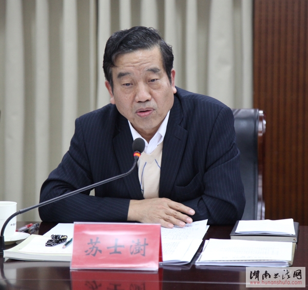 苏士澍发表总结讲话。他充分肯定了中国书协机关领导班子的工作,并对七届主席团成员提出了三点要求:一是要加强政治学习,认真学习习近平总书记在文艺工作座谈会和党的群团工作会议上的重要讲话精神、中国文联九届八次全委会和刘奇葆同志在七次书代会上的讲话精神,坚持“二为”方向和“双百”方针,坚持以人民为中心的工作导向和创作导向,努力做德艺双馨的“四有”书法家;二是要加强书法业务修养,时代的发展向书法工作者提出了越来越高的要求,主席团成员更应该有紧迫感,要善于学习,取长补短,不断加强传统文化修养,提高书法创作水平,规规矩矩写字,堂堂正正做人,把精力更多放在学习和工作上,切记不要走穴,不要炒作、不要做金钱的奴隶;三是要加强团结,中国书法家协会从成立到今天,一路走来不容易,我们要十分珍惜爱护这个大家庭,传送好届届相传的接力棒。主席团成员之间既要分工,更要合作,大家团结一心,同舟共济,担负起时代赋予的责任,把书法艺术更好地传承和发扬下去,不辜负党和人民的期望。