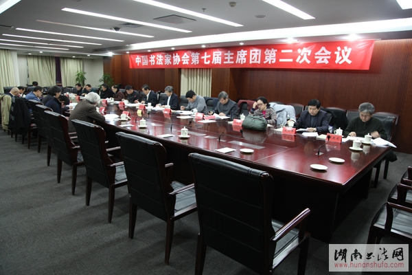 1月16日,中国书协第七届主席团第二次会议在京召开。中国书协主席苏士澍,中国书协分党组书记、驻会副主席陈洪武,中国书协副主席王丹、毛国典、包俊宜、刘金凯、刘洪彪、孙晓云、吴东民、宋华平、张建会、顾亚龙出席了会议。何奇耶徒、陈振濂、翟万益因事请假。中国书协秘书长郑晓华,中国书协分党组成员、副秘书长曹建明、潘文海,中国书协副巡视员张陆一,中国文联书法艺术中心主任刘恒,中国书法出版传媒有限责任公司董事长、总经理李世俊等列席会议。会议由苏士澍主持。