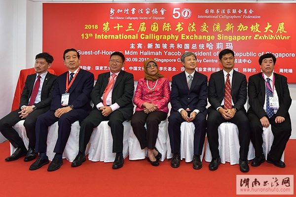 新加坡总统哈莉玛莅临开幕式并致开幕词。她在致辞中称赞新加坡书协使书法在新加坡扎根,成为新加坡多元文化的一部分。开幕式上,哈莉玛总统向参展代表团颁发了“书法一家”荣誉证书。