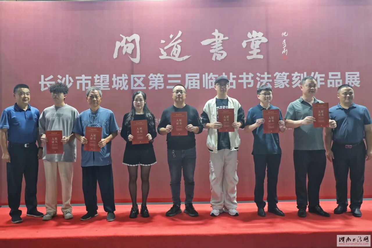 (本网讯)2025年9月29日,由中共长沙市望城区委宣传部、望城区文联主办,望城区书法家协会、欧阳询书画院执行的“问道书堂”长沙市望城区第三届临帖书法篆刻作品展在欧阳询书画院开幕。