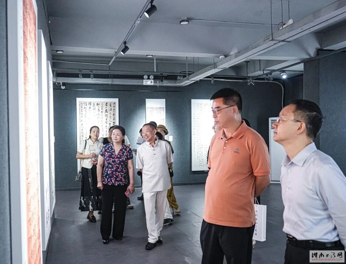 中国书协副主席、湖南省书协主席鄢福初,中国书协副主席、四川省书协主席代跃,四川省诗书画院常务副院长王琼,四川省书协顾问何开鑫,中国书协理事、四川省书协驻会副主席兼秘书长王道义,中国书协理事、四川省书协副主席林峤,中国书协行书委员会委员、四川省书协副主席钟显金,中国书协理事、湖南省书协驻会副主席、省女书协主席吴萍,四川省诗书画院副院长冷柏青,四川省美协副主席邝明惠,成都画院党支部书记、副院长李志权,四川省工笔画学会副会长、成都画院学术委员会主任向洋,成都市书协副主席张雁、何江流,湖南省女书法家协会顾问、副主席、主席团成员,优秀作者和入展作者代表以及书法爱好者等出席。