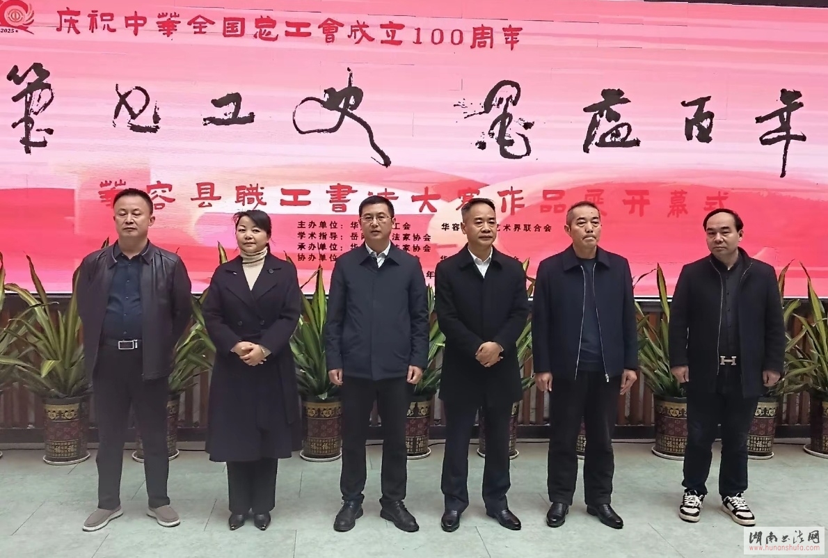 (本网讯)2025年11月18日,由华容县总工会、华容县文联主办,华容县书法家协会承办的“笔书工史·墨蕴百年”华容县职工书法大赛作品展在县政务中心开幕。中共华容县委常委、县委办主任、县总工会主席胡军,华容县文联党组书记、主席赵宇,华容县书法家协会主席孙其美等出席活动。