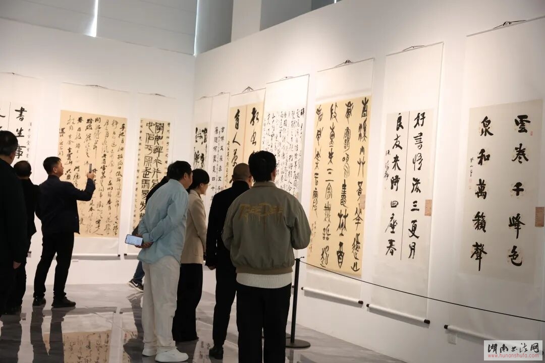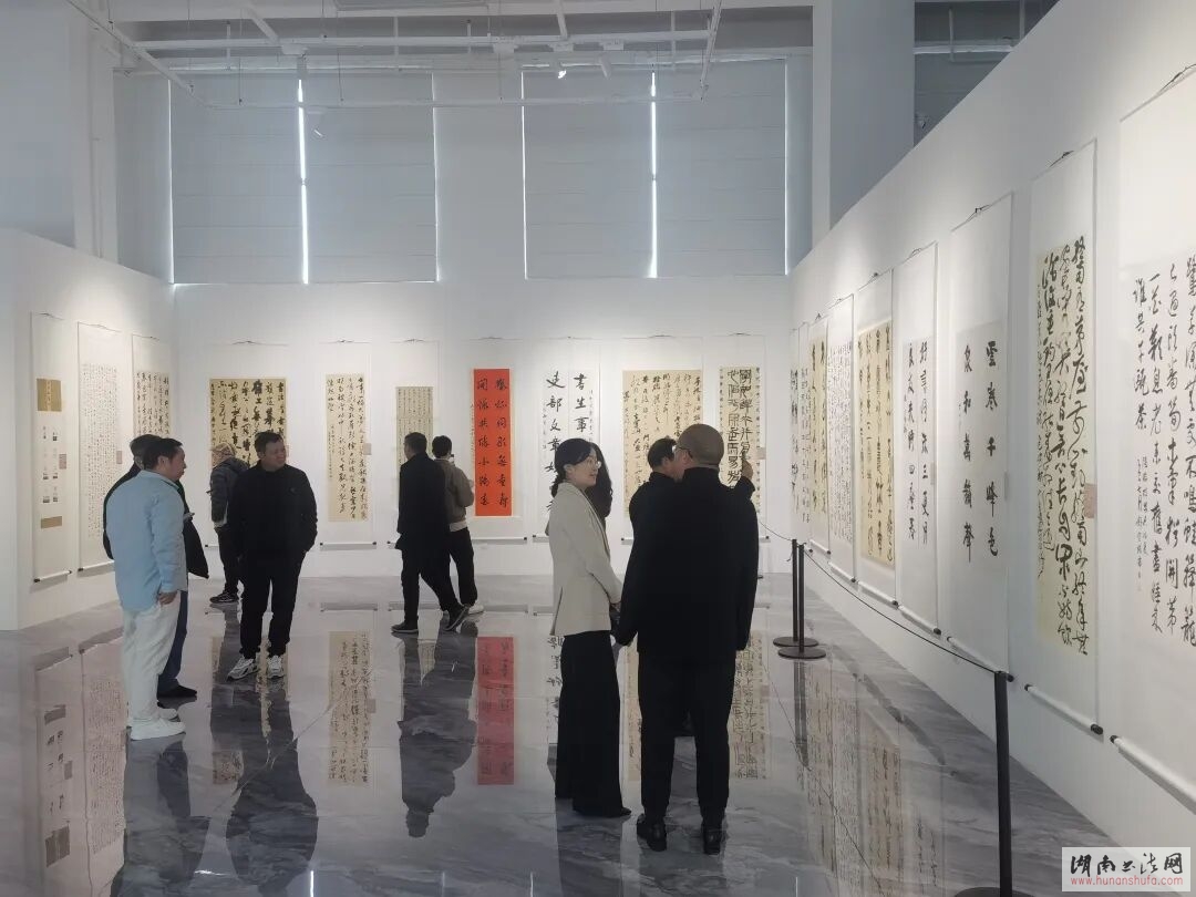 (本网讯)2025年12月5日,由长沙市文联、中共长沙市雨花区委宣传部指导,长沙市雨花区文联、佛山市高明区文联、东莞市东城文联主办,长沙市雨花区书协、佛山市高明区书协、东莞市书协东城分会承办的“墨韵长卷绘新城·笔链湾区共繁荣”——长沙雨花·佛山高明·东莞东城三地书法联展在长沙市雨花区大观仓博物馆开幕。