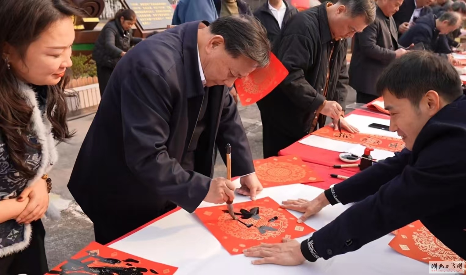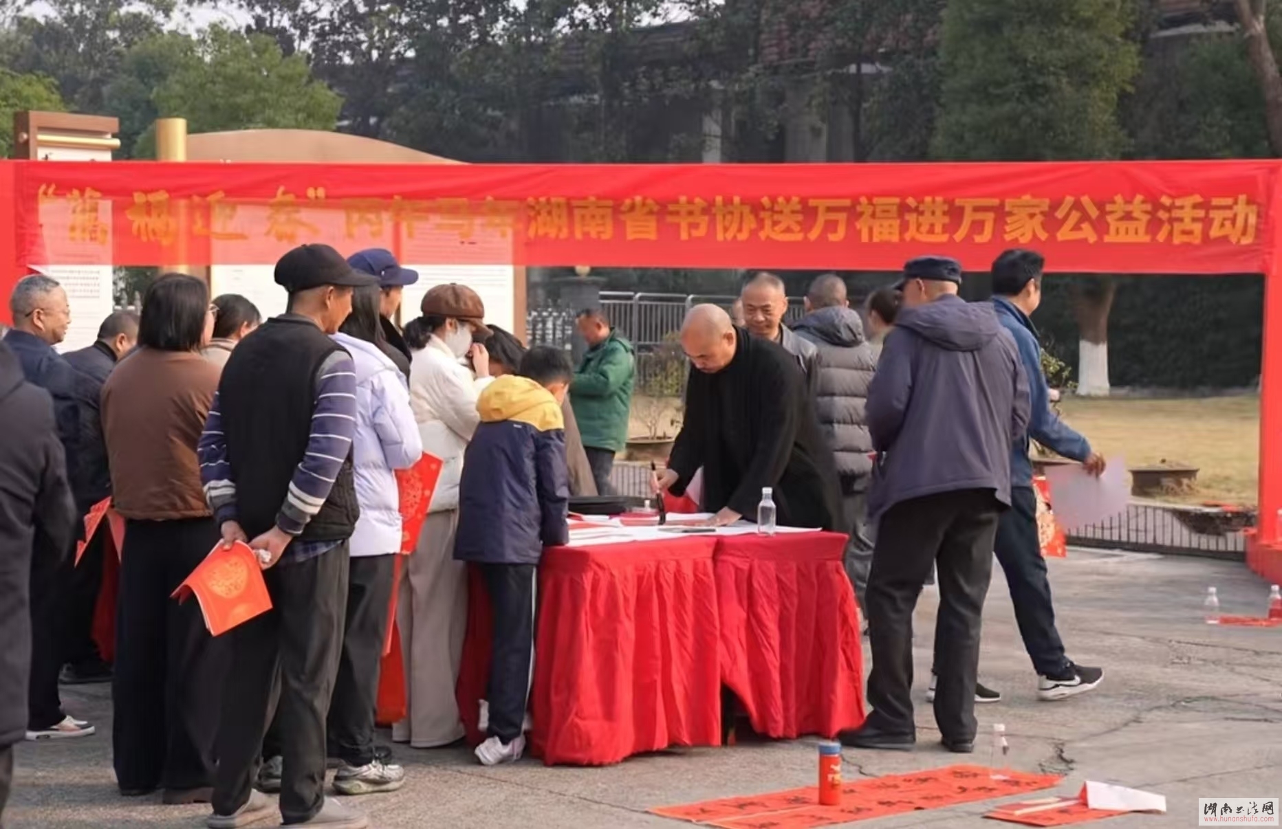 此次活动旨在落实中国书协《关于开展2026丙午马年“万福迎春”公益活动的通知》和湖南省文联2026年新时代新春联“百千万”艺术工程的有关要求。活动现场,省书协书法家挥毫泼墨,创作春联与福字,赠送给现场的群众,受到广大群众的热议和好评。
