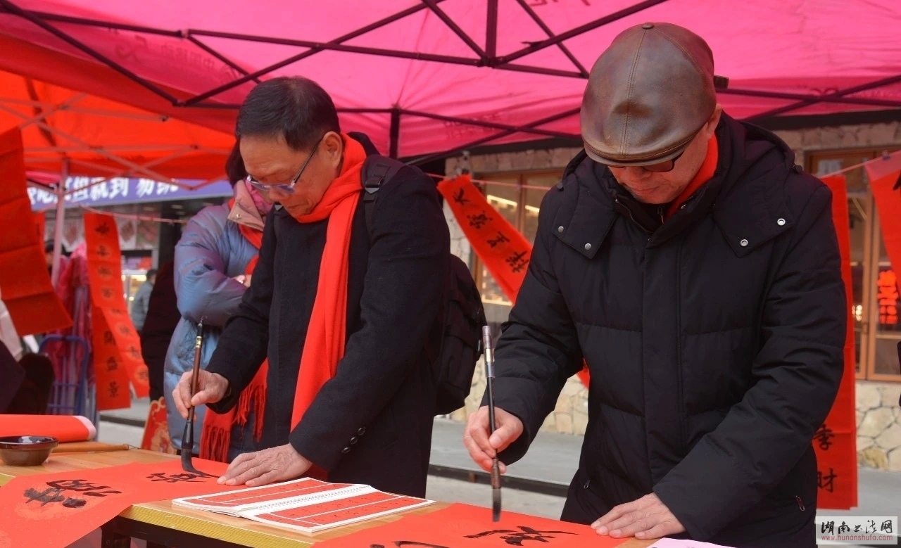 仪式结束后,来自县书法家协会、县老干部书画协会等团体的40余名文艺志愿者挥毫泼墨,笔走龙蛇。一幅幅寓意吉祥的春联、一个个饱含祝福的“福”字跃然纸上,涵盖了家国情怀、新春祝福、美好生活、移风易俗等诸多主题。据了解,活动前期已备好1000副春联和1000个福字,现场还书写了1000多副春联和福字,县移动公司也准备了1000套印制春联福字,全部免费赠送给市民。同时,县民政局还在现场发放腊八粥,让市民在寒冬中感受到双倍温暖。